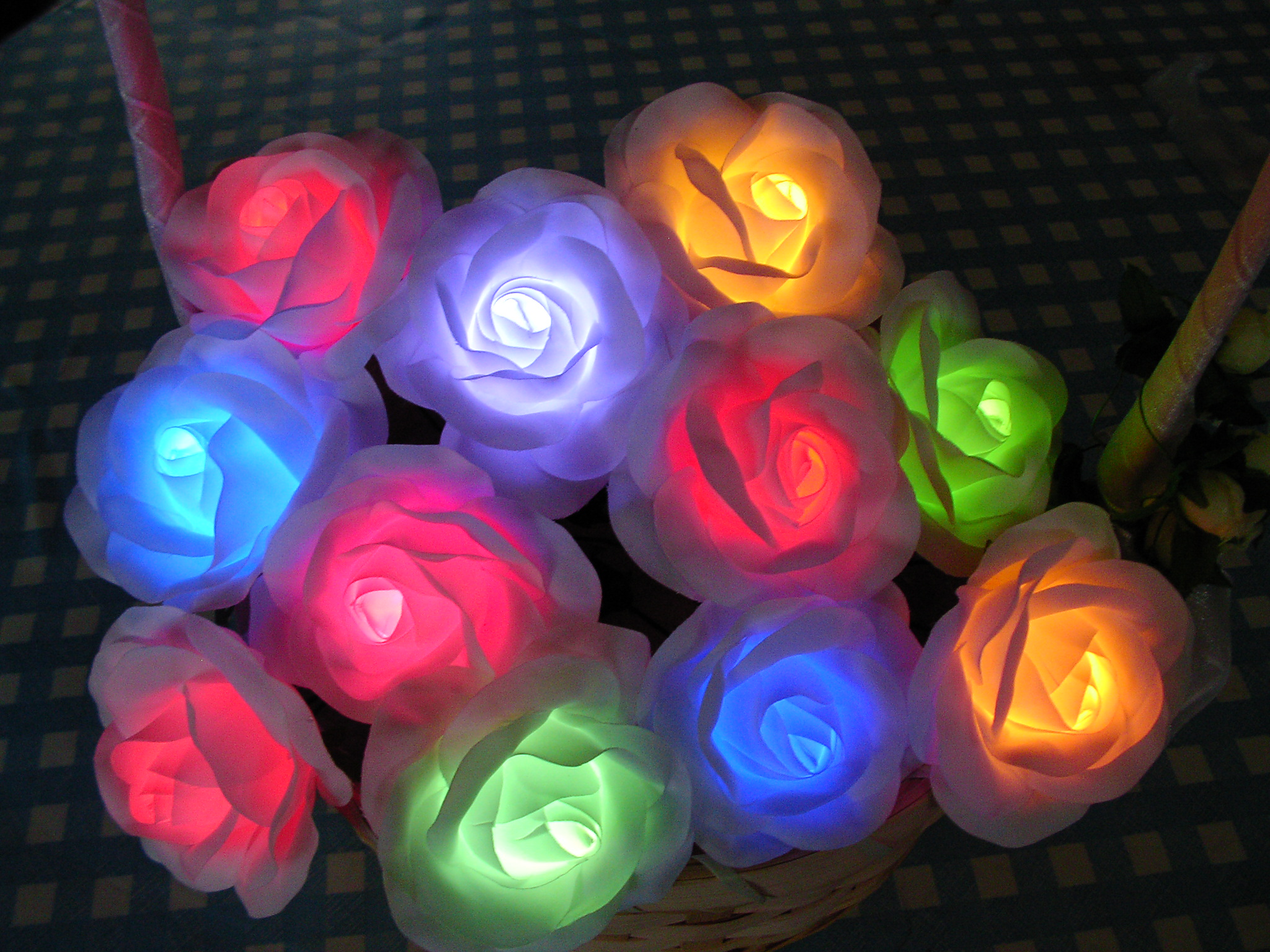 スイッチを入れるとゆっくり七色に変化していきます。キャンドルサービスの変わりに、ゲストへのプレゼントの他 衣装や髪にも簡単に