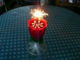 キャンドルの下部に火をつけると、パッと光り、花火になります。