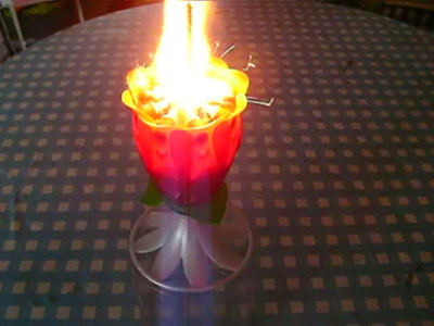火をつけると花火が始まり、次に炎があがります。最後に見事開花します。